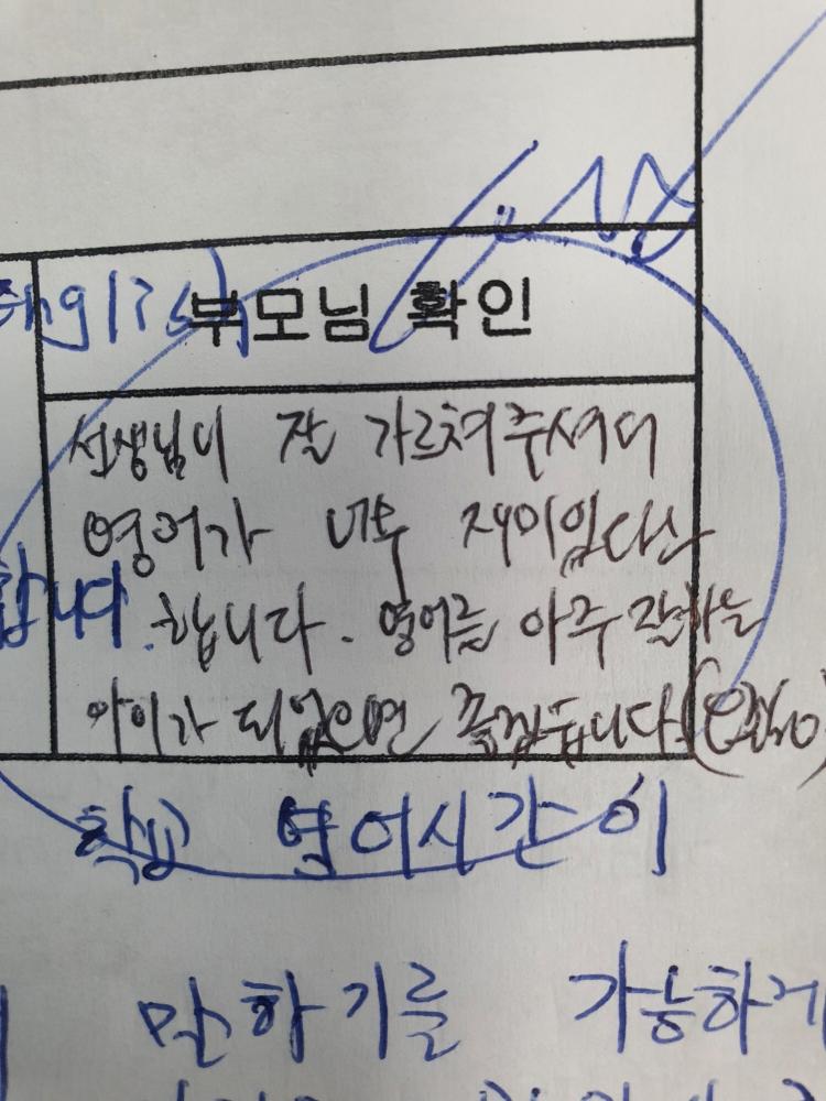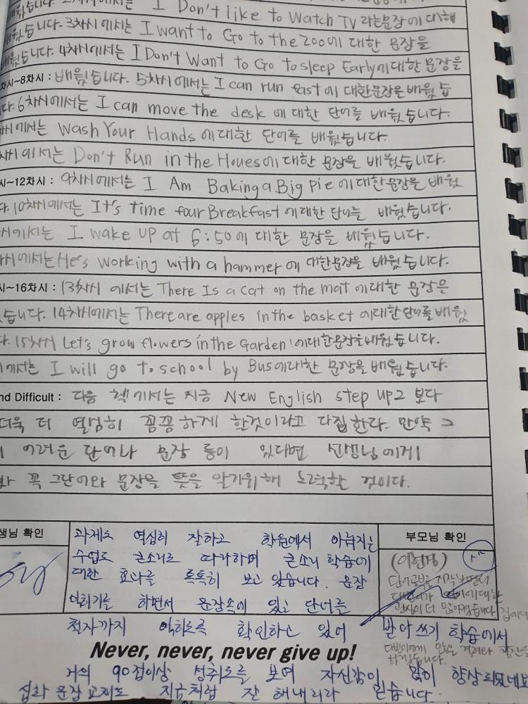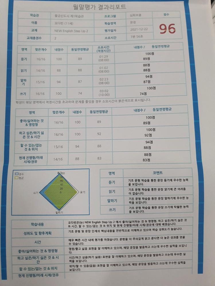 매월교재를 마치고실시한 월말테스트레포트와 교재정리소감서,담딩교사의 코멘트,학부모회신서